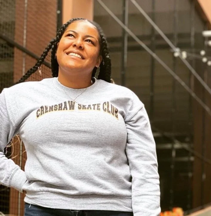 Jillian Thompson (b. Detroit, MI) is a multidisciplinary artist whose work explores the contemporary Black women's experience through a diverse range of materials. Using metalwork, silkscreen, fibers, photo collage, and found objects, she examines narratives of culture and self-expression through both wearable pieces and imagery. Her work has been exhibited at Emerge Gallery, MCLA Gallery 51, Angels Gate Cultural Center and the Alt Summit Conference in Palm Springs. Thompson earned her Master of Fine Arts in Jewelry & Metalsmithing from California State University Long Beach and currently teaches at California State University Long Beach and Long Beach City College.